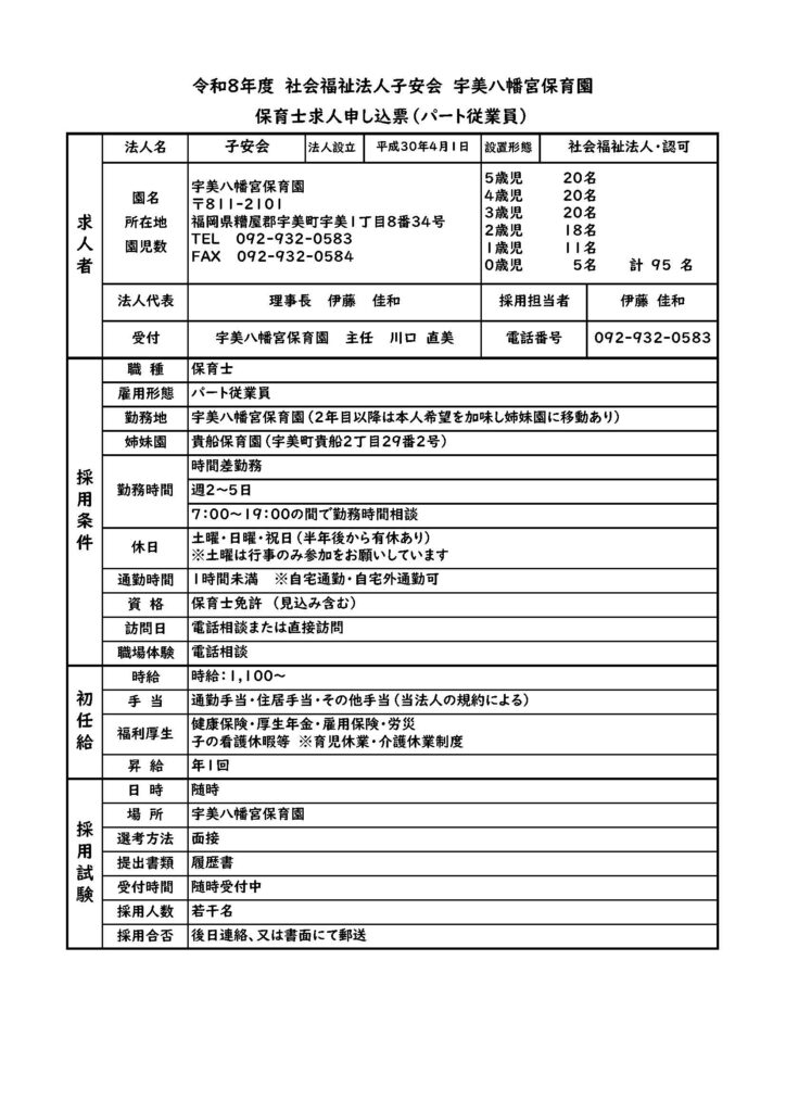 パート募集: